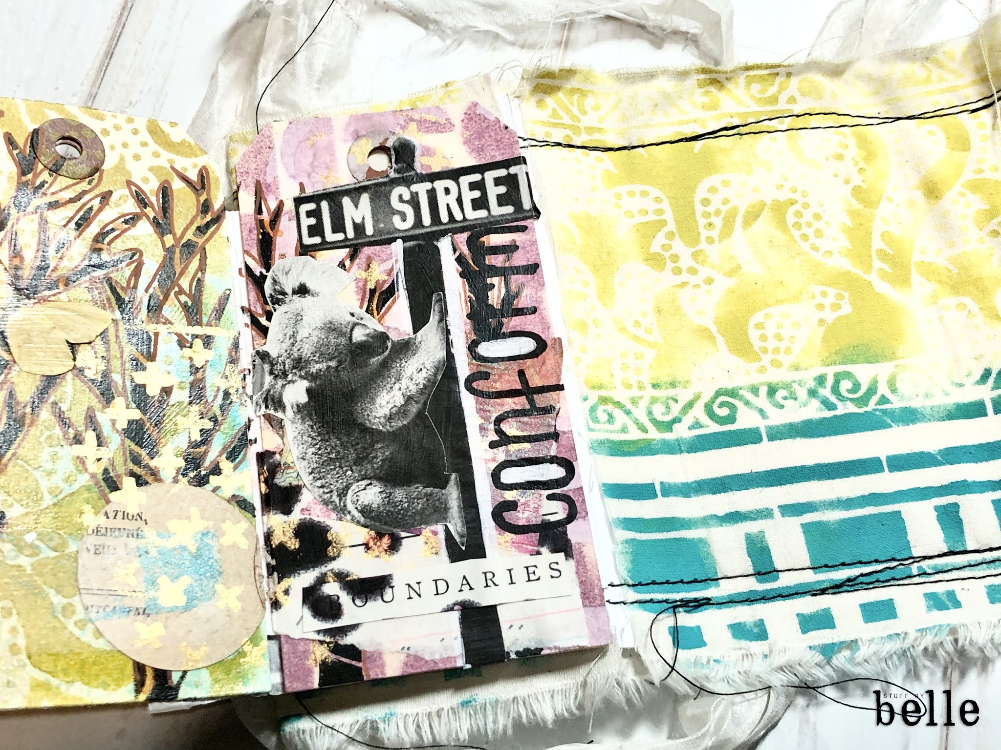 I am thrilled to be a part of a fabulous StencilGirl collaboration! This one involved swapping tags, 2 each, with 14 participants and then creating with the tags. Tina Walker, StencilGirl Columnist, spear headed the collaboration and you can find the post that includes all the fabulous artists work over on the StencilGirl Talk blog. Here you will be able to follow links to all the projects and see details of all of the amazing work by so many talented ladies!
